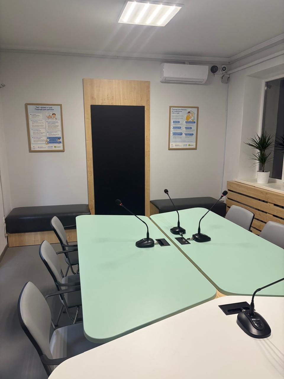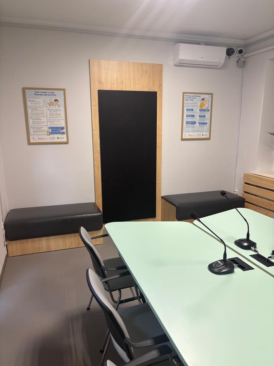 Для здійснення процесу судових слухань у вказаній залі за участі неповнолітніх, особливо, що стосуються опіки, сімейних конфліктів або захисту прав дітей у вказаному залі здійснено спеціальний дизайн, використано м’які кольори, встановлено зручні меблі, запроектовано інтерактивну зону і елементи, що асоціюються із безпекою та підтримкою дитини.